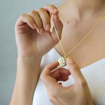 An 18K gold locket designed to guard your most cherished memories.